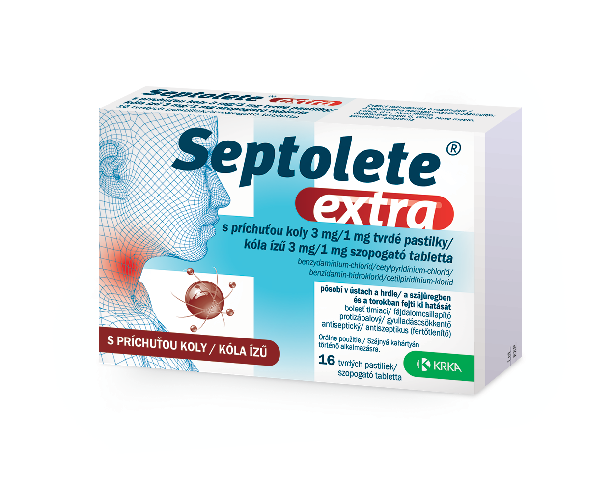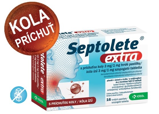 Septolete extra pastilky a sprej obsahujú jedinečnú kombináciu dvoch účinných látok, ktoré trojitým účinkom rýchlo zmierňujú bolesť v hrdle, zápal a odstraňujú pôvodcov infekcie už od prvých príznakoch bolesti hrdla až po silnú bolesť. Pastilky sú dostupné v rôznych príchutiach, od najobľúbenejšieho eukalyptu po svieže príchute citrónu a bazy a citrónu a medu.